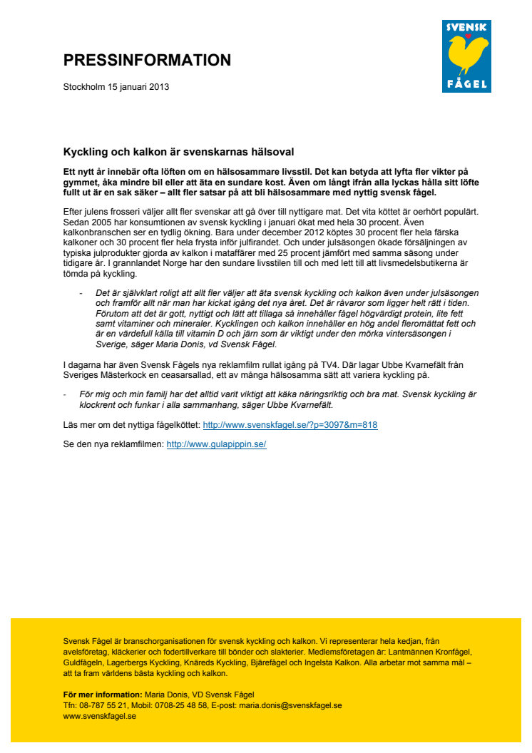 Ett nytt år innebär ofta löften om en hälsosammare livsstil. Det kan betyda att lyfta fler vikter på gymmet, åka mindre bil eller att äta en sundare kost. Även om långt ifrån alla lyckas hålla sitt löfte fullt ut är en sak säker – allt fler satsar på att bli hälsosammare med nyttig svensk fågel.
