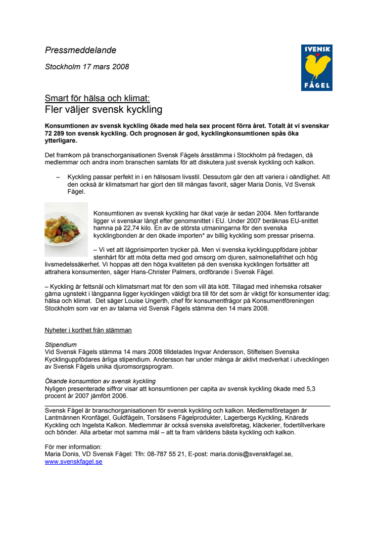 Konsumtionen av svensk kyckling ökade med hela sex procent förra året. Totalt åt vi svenskar 72 289 ton svensk kyckling. Och prognosen är god, kycklingkonsumtionen spås öka ytterligare.
