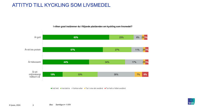 Ipsos har på uppdrag av Svensk Fågel genomfört en konsumentundersökning om kyckling. Studien har genomförts årligen sedan 2012. 1 079 intervjuer genomfördes under perioden 5–7 augusti 2024. Ansvarig för undersökningen: Heléne Hedlund-Johnsen