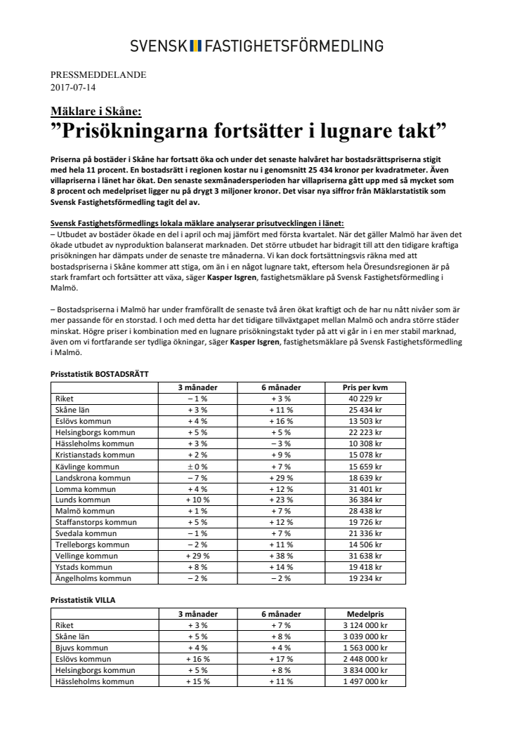 Mäklare i Skåne: ”Prisökningarna fortsätter i lugnare takt”