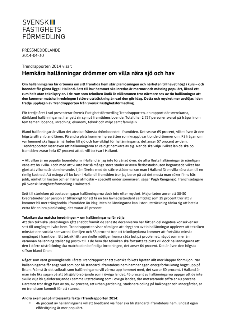 Trendrapporten 2014: Hemkära hallänningar drömmer om villa nära sjö och hav