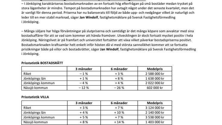 Svensk Fastighetsförmedlings lokala mäklare analyserar prisutvecklingen i länet: