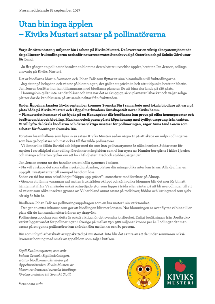 Utan bin inga äpplen – Kiviks Musteri satsar på pollinatörerna