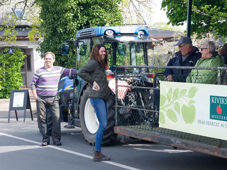 Jessica Reslow guidar på Äppelblomssafari på Kiviks musteri.