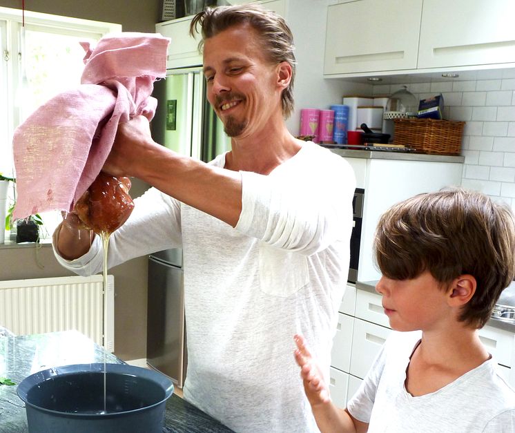 Paul Svensson kramar egen honung med sin son Love.