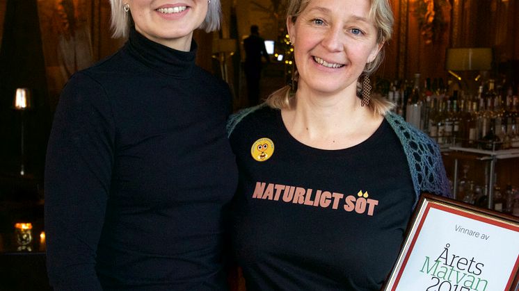 Mat&Vänners chefredaktör Pia Bendel med Årets Matvän Lotta Fabricius Kristiansen.