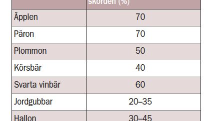 ( **se tabellen Så mycket ökar skörden av frukt och bär med pollinering/ Jordbruksverket.)
