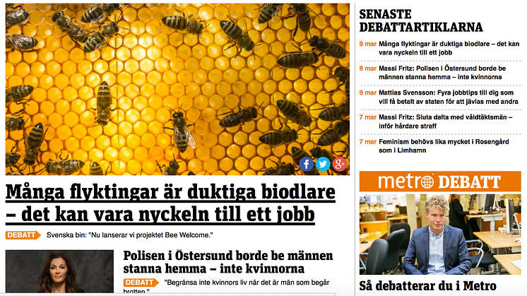 I Metro Debatt går Svenska Bin ut med ett upprop för Bee Welcome: