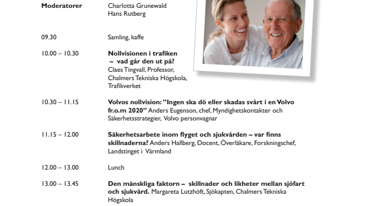 Den 25 april arrangerar Svenska Läkaresällskapets kommitté för säker vård ett seminarium om patientsäkerhet," PATIENTENS SÄKERHET – VÅRT ANSVAR. Den mänskliga faktorn och ledarskapets betydelse för en säker vård – kan en nollvision användas inom sjukvården?".