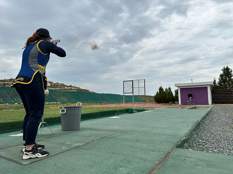 Victoria Larsson träffade 119 av sina 125 lerduvor i Larnacas världscup och tog sig vidare till damernas final.