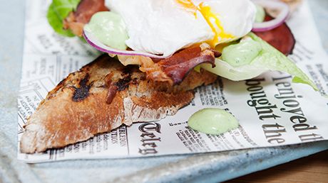 Pocherat ägg på surdegsbaguette samt persiljemajonnäs