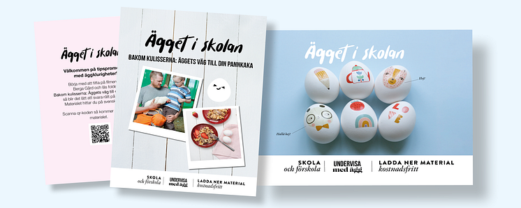 Informationsmaterialet består av både tryckt och digitalt material, bland annat ”Äggskola för stora och små”, ”Bakom kulisserna” om äggets väg från hönsgården till pannkakan och tipspromenad med äggklurigheter.