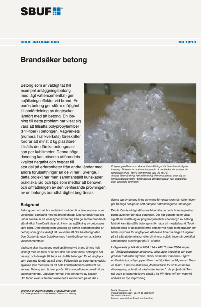 SBUF Informerar, nr. 10-13 - Brandsäker betong
