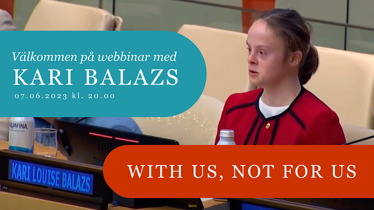 ”I need people to work with me, not do things for me. I need people to teach me, not take care of me. I need leaders to make laws that support my decision making, my work and my future. I have potential and I am planning on having a fabulous life. Be with us, not for us.” Så avslutade Kari Balazs sitt tal på Världsdagen för Downs syndrom, 21 mars 2023, på FN:s högkvarter i New York. Kari imponerade stort med sin närvaro och engagemang och vi är så glada över att hon nu vill hålla i en föreläsning för våra medlemmar.