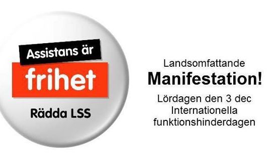 Assistans är frihet! Rädda LSS! Landsomfattande manifestationer på Internationella funktionshinderdagen lördagen den 3 december 2016 klockan 13:00