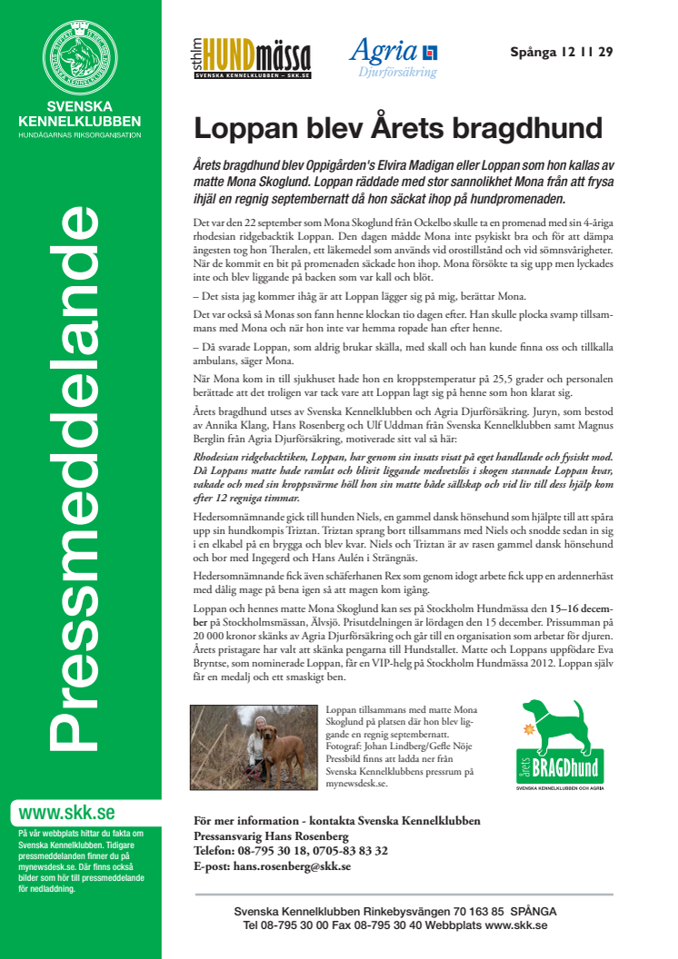 Årets bragdhund blev Oppigården's Elvira Madigan eller Loppan som hon kallas av