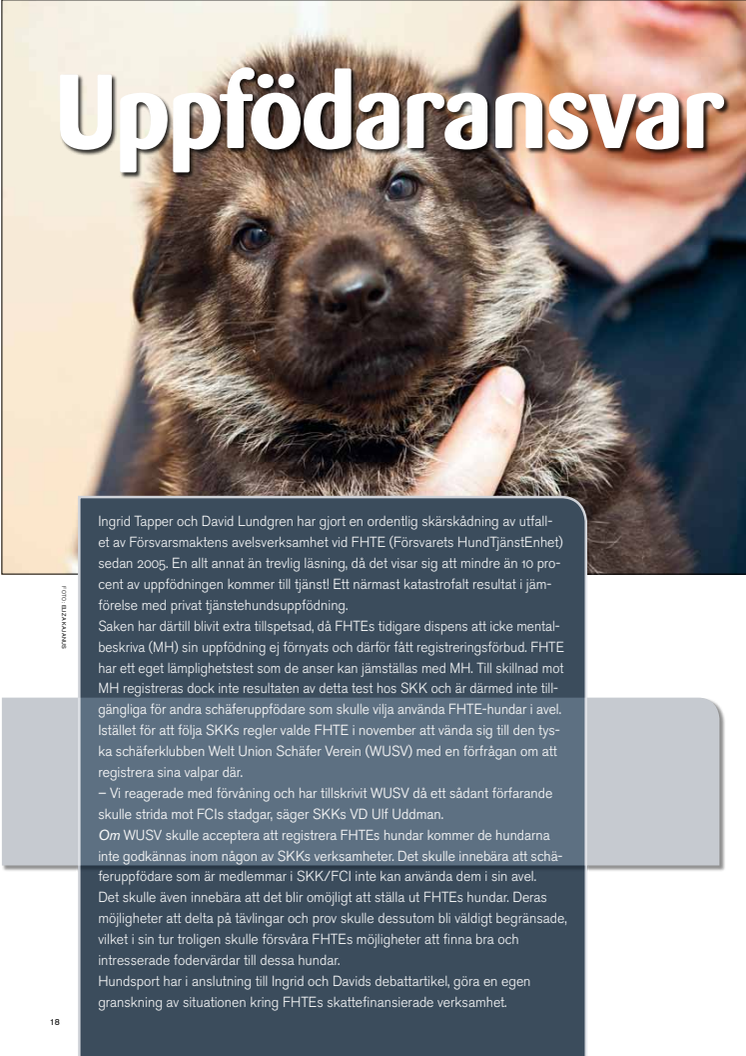 Frågorna är många just nu kring Försvarsmaktens hunduppfödning och Försvarets hundtjänstenhets (FHTE) avelsverksamhet. Staten har blivit Sveriges största hunduppfödare och utvecklingen verkar gå mot en allt mer kostsam och samtidigt sluten verksamhet.