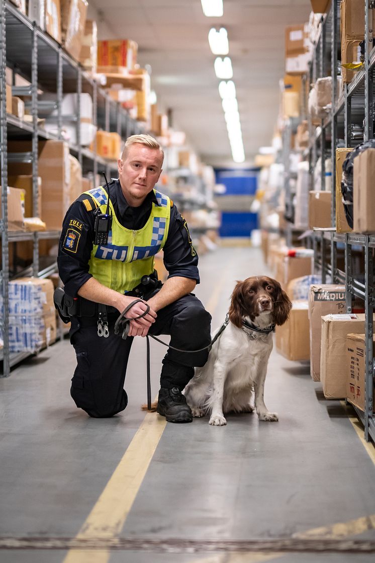 Årets narkotikasökhund 2021 Moss tillsammans med sin förare Christoffer Carlsson