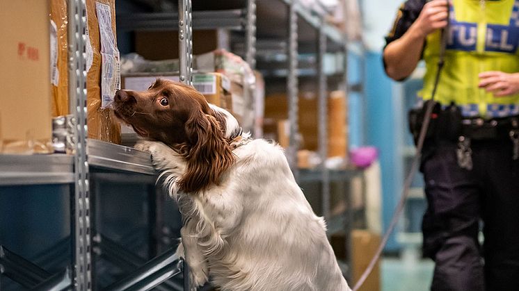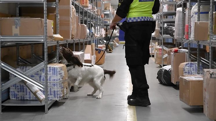 Sökhunden Moss och hundföraren Christoffer Carlsson arbetar i post- och fraktflödet i södra Sverige. Där söker ekipaget i de väldiga flöden av brev och paket som skickas från världens alla hörn.