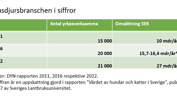 DYN företräder bland annat branscher som zoofackhandeln, djursjukvården, försäkringsbolag, djurskydd, djurparker och ideella organisationer. I den sistnämnda gruppen ingår Svenska Kennelklubben. Rapporten är den tredje i ordningen och baseras på insamlade data och branschrapporter.