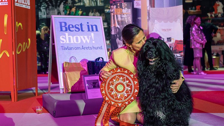 Portugisiska vattenhunden Aquafortis Robel The One slog drygt 6 000 andra hundar och tog hem titeln Best in Show på Stockholm Hundmässa 2022. Finalen dömdes av Moa Persson.