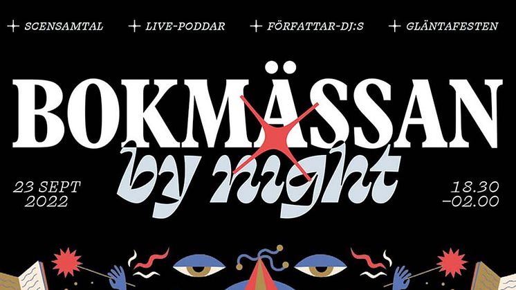 Idag släpps programmet till Bokmässan by Night – årets stora nyhet på Bokmässan där festsugna kulturintresserade kan botanisera bland livepoddar, kulturdebatter, dansgolv och barer. Bokmässan by Night är i år även hemvist för den klassiska Gläntafesten, som traditionellt arrangeras i samband med Bokmässan.