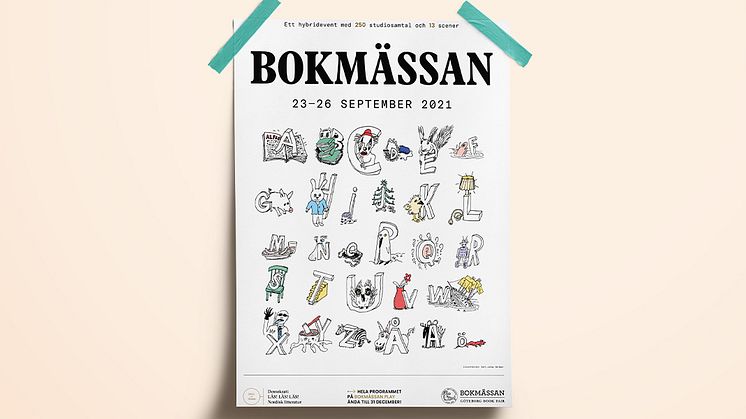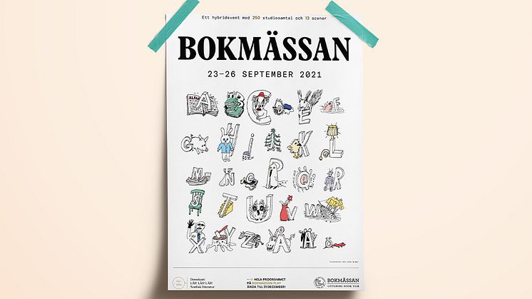 Pressbild: Affisch Bokmässan 2021 / Illustration: Carl Johan De Geer >>