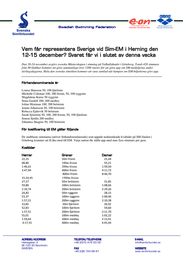 Vem får representera Sverige vid Sim-EM i Herning den 12-15 december? Svaret får vi i slutet av denna vecka