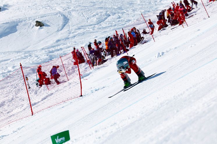Agnes Abrahamsson under världscuptävling i franska Vars där hon säkrade tredjeplatsen i totala världscupen.