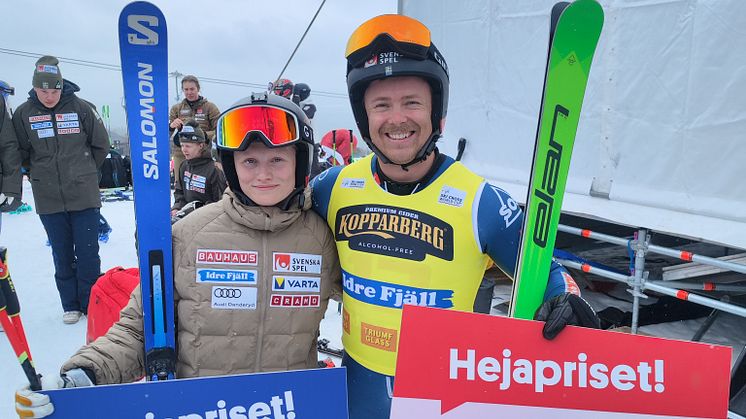 Skicross-åkarna Uma Kruse Een och Erik Mobärg ger Hejapris-pengar till Sälens IF och Edsåsdalens Slalomklubb