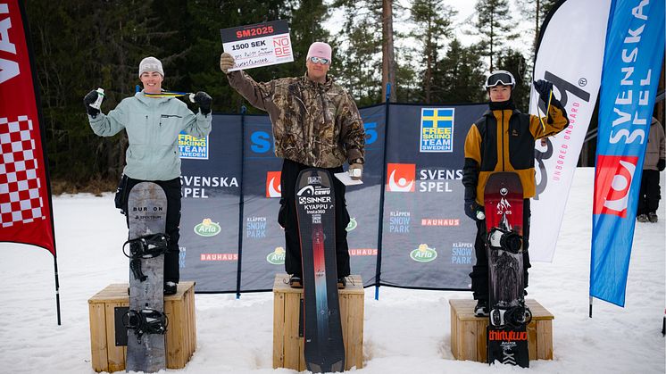 Efter ett railjam där glädje, lekfullhet och kreativitet stod i fokus vann Novalie Engholm, Falu Snowpark, och Lucas Olander, Sälens IF, seniorklassen på snowboardsidan.