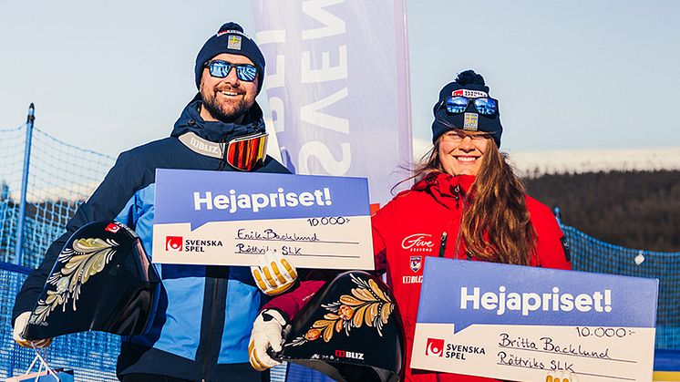 De nyblivna svenska mästarna Britta och Erik Backlund skänker hälften av Hejapriset till sin hemmaklubb Rättviks SLK. för att fler ska få chansen att åka skidor.