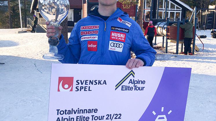 Vinnarna av totalcupen i Svenska Spel Alpine Elite Tour får, förutom pokalen från Glasbolaget i Bro, sakpriser i form av presentkort från Rawbike och en rad produkter från Cramo. Det innebär också dubbla prischeckar på 15 000 kronor från Svenska Skidförbundet och 20 000 kronor från Svenska Spel. Åkare som placerar sig på plats två till sex, samt bäste junior, tar också hem priser från Huski, POC, Cramo och Polar samt prispengar. Linn Rydstedt är projektledare för Svenska Spels samarbete med Ski Team Sweden Alpine.