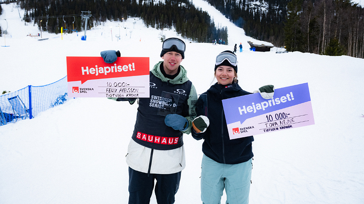 Tova Nejne och Felix Axelsson totalvinnare i Swedish Snowboard Series – skänker prispengar till Klimpfjälls Alpina och Åreklubben Massa Brudar