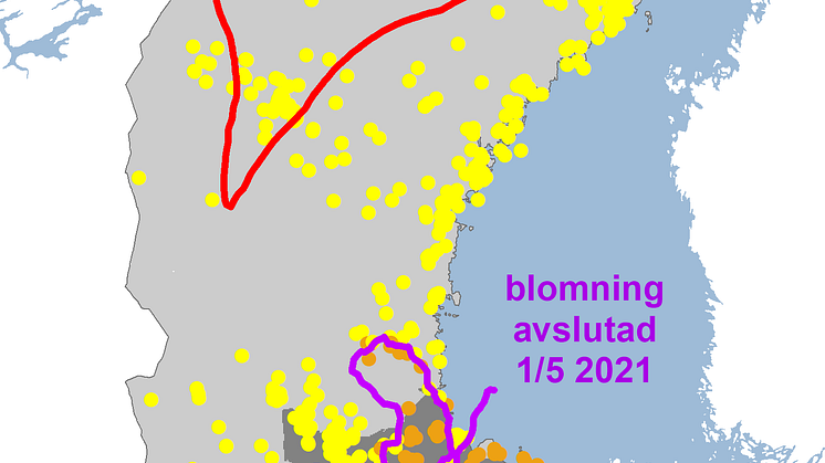 I år har det varit väldigt tydligt hur olika våra arter reagerar på olika väderförhållanden under våren. De tidiga arterna, såsom tussilago, blåsippa, vitsippa och sälg kom tidigt i blom tack vare en långvarig mild vår, medan björkens lövsprickning och häggblomningen, som är lite senare i starten, inte hann få tillräckligt med värme för att hinna slå ut innan den kyliga avslutningen av april inleddes och hela processen för att komma till lövsprickning respektive blomning stannade av. Vi ser också att de tidigblommande arterna fortfarande blommar i stora delar av landet, även om de började blomma för flera veckor sedan.