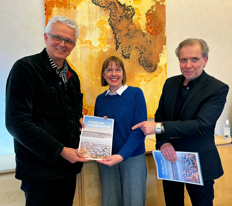 Mats Widbom, vd Svensk Form, Sophia Laurin (Departementsråd och enhetschef Enheten för kulturarv och livsmiljö Kulturdepartementet), Jonas Olsson, vd SVID