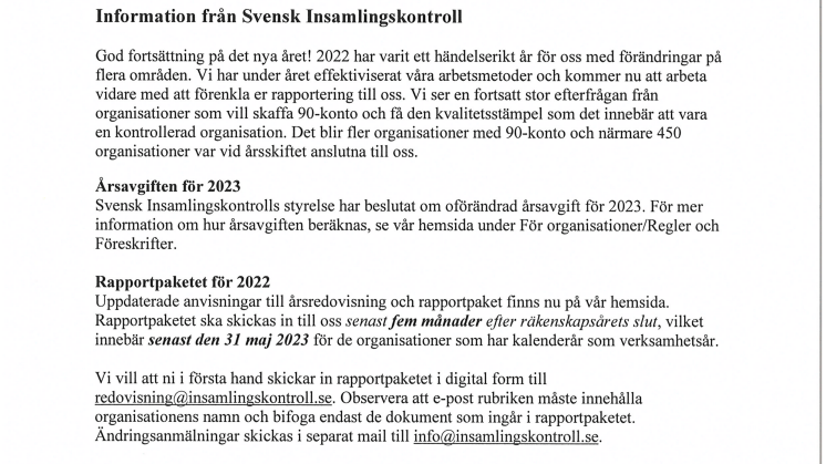 Informationsbrev från Svensk Insamlingskontroll