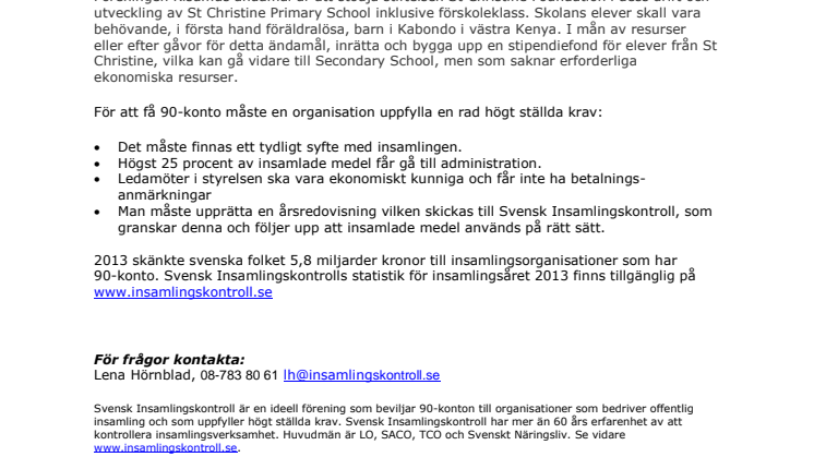 För frågor kontakta:Lena Hörnblad, 08-783 80 61 lh@insamlingskontroll.se