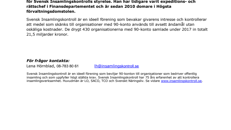 Justitieråd blir ny ordförande för Svensk Insamlingskontroll