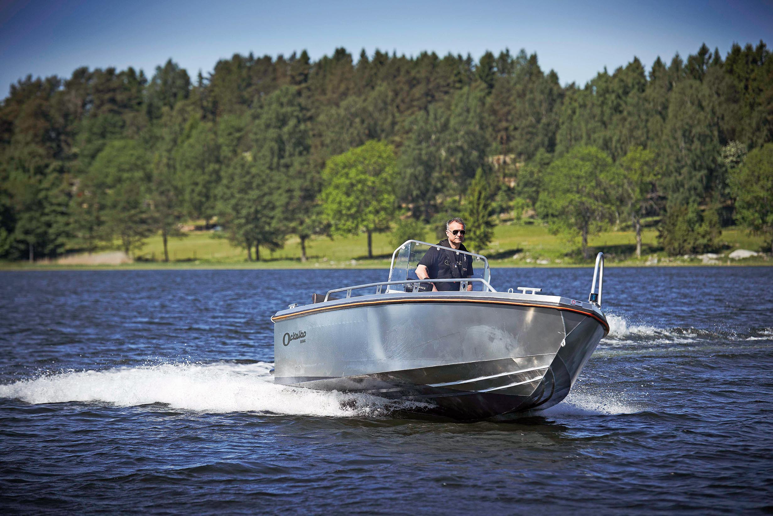 – Jag bor ju på en ö så jag är helt beroende av att båten fungerar dagligen till alla tänkbara sysslor och inte bara nöje. Drömmen var ju att köra aluminium som är så hållbart i och med att jag lastar och håller på med så mycket grejer. Så när jag hörde talas om den här båten så var det ingen tvekan. Dessutom är jag mycket skrovintresserad och visste ju vilken fin gång det var på Ockelbos gamla glasfiberbåtar. Faktum var att jag hade bara sett den på hemsidan innan jag satte mig i den första gången.
