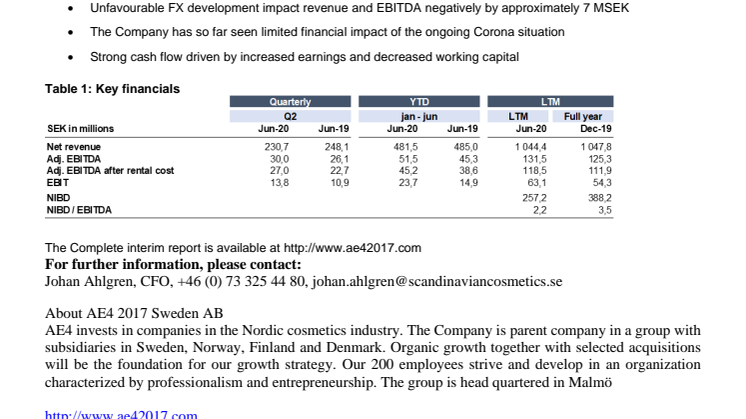 This information is information that AE4 2017 Sweden AB is obliged to make public pursuant to the Securities Markets Act. The information was submitted for publication, through the agency of the contact person set out above, at 15:00 CEST on 27 July, 2020.