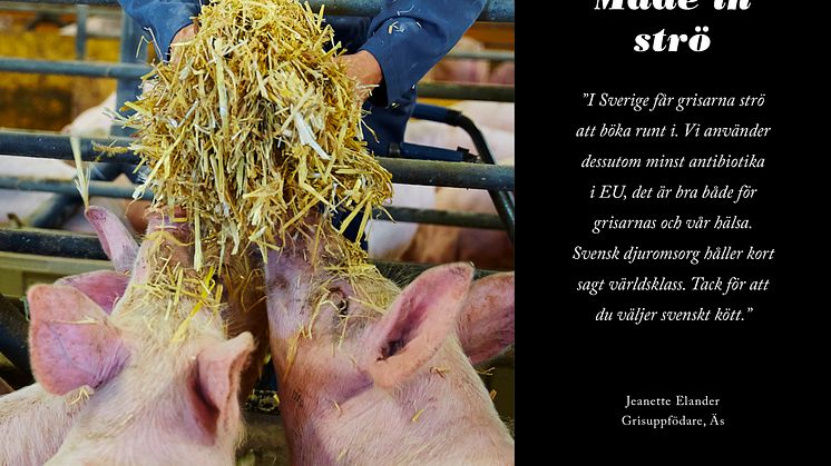 – I Sverige får grisarna strö att böka runt i. Vi använder dessutom minst antibiotika i EU, det är bra både för grisarna och vår hälsa. Svensk djuromsorg håller kort sagt världsklass, säger Jeanette Elander.