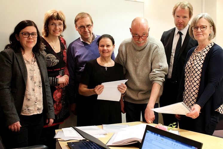Delar av styrelsen vid sammanträdet på Kyrkokansliet i Uppsala.