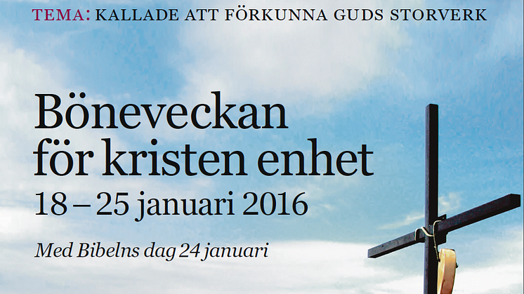 Böneveckan är världens största ekumeniska manifestation som genomförs samtidigt i cirka 75 länder. Sveriges kristna råd och Svenska bibelsällskapet översätter och bearbetar det internationella grundmaterialet. Inför 2016 har Böneveckan temat ”Kallade att förkunna Guds storverk”. Materialet har förberetts av en arbetsgrupp i Lettland.