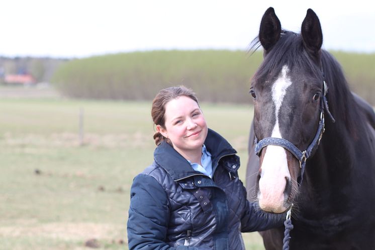 Katrin Lindroth, forskare vid SLU, och hennes häst Bacchus