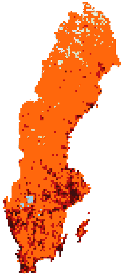 Bilden visar i stort var rapportörerna i Artportalen framför allt finns.