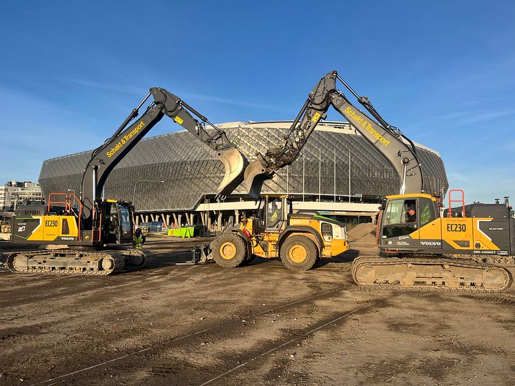 Tre eldrivna maskiner från Volvo CE; två stycken bandgrävare EC230 Electric och en hjullastare L120H Electric Conversion.