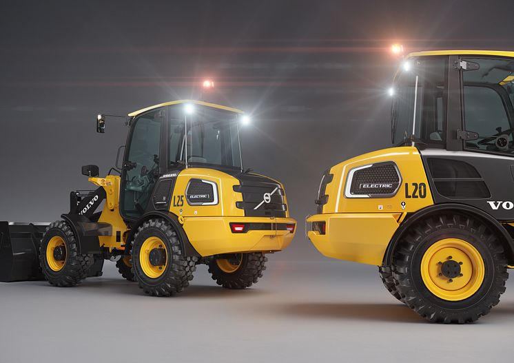 Volvo L20 och L25 Electric är två av fem modeller i Volvos sortiment av eldrivna kompaktmaskiner 2022.
