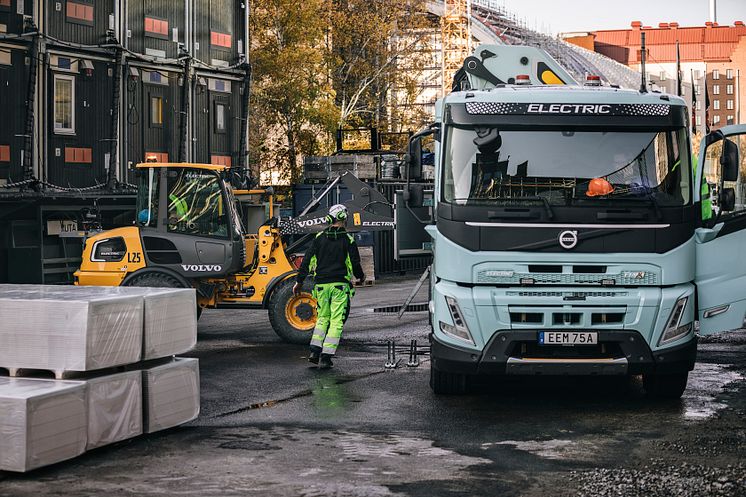 Volvo L25 Electric och FMX Electric under byggandet av World of Volvo i Göteborg.