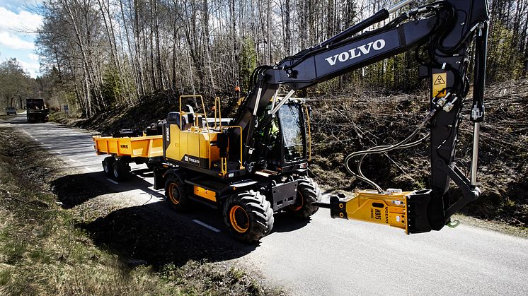 Jonny Fagerhill bytte inte bara jobb – han bytte också upp sig ordentligt. Den gamla Volvo EW160C ersattes med den helt nya EW160E och på köpet blev det ett paket med idel nyheter från Swecon: Volvos nya hydraulhammare HB15, tre skopor ur Volvos nya skopsortiment samt den nya Humusvagnen. – Jag fick precis allt jag ville ha, skrattar Jonny.